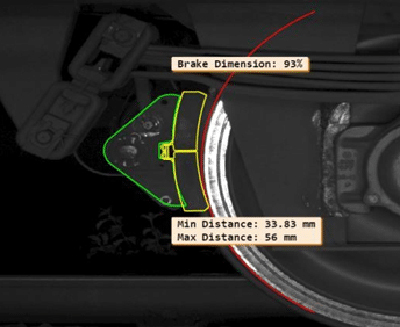 The image processing system checks the dimensions of the train brakes and supports the maintenance operator.